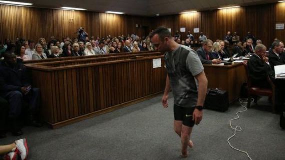 In today’s court hearing at Pretoria High Court, Oscar Pistorius shocked those present when he removed his prosthetic limbs and walked round the courtroom in pain, seen as a desperate emotional bid by him and his defense team to get a lighter sentence for the alleged murder of ex-girlfriend Reeva Steenkamp in 2013.