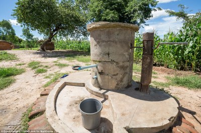 Water supply: Water is brought to homes in the village through a well that the many children take in turns to operate with a handle