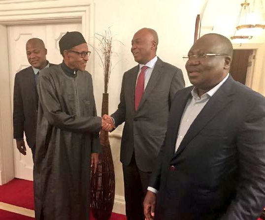 President Muhammadu Buhari wrote on his official twitter handle: “Pleased to receive Senate President @bukolasaraki, Speaker @YakubDogara and Senate Leader Ahmed Lawan, tonight.”