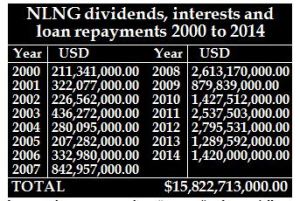 Official documents have it that the $15,822,713,000.00 dividends came from the NLNG between 2000 and 2014. The funds were said to be paid into the Consolidated Revenue Fund of the Federation or the Federation Account.