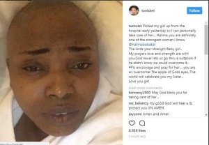 But Tonto shared on Sunday a photo of the actress on a hospital bed.