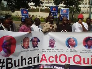 The protesters demanded that the President should either act or quit office.