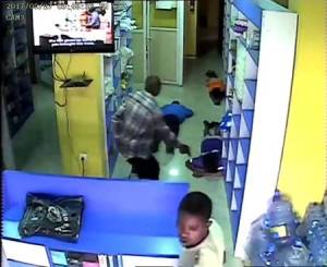 The images show the robbers carting away all they could lay their hands on, while the pharmacy’s staff lay on the floor.