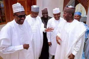 The Presidency on Tuesday made clarification about a photograph circulating in the social media, purportedly showing fugitive former Chairman of Presidential Task Force on Pension Reforms, Abdulrasheed Maina, cracking jokes with President Muhammadu Buhari, Senate President Bukola Saraki and other top government officials after Juma’at prayers at the State House Mosque.