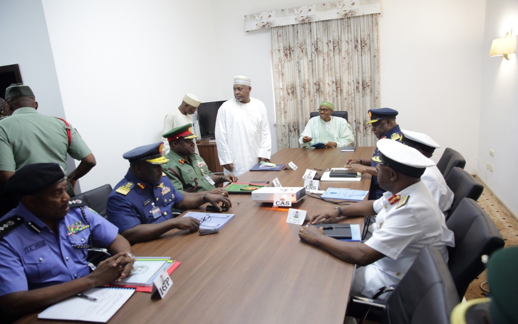 Also in attendance were the Inspector General of Police, Ibrahim Idris, the National Security Adviser, Rtd. Maj.-Gen. Babagana Monguno, Acting Director General, Department of State Service (DSS), Matthew Seiyefa, Director General, National Intelligence Agency(NIA), Ahmed Abubakar, the Minister of Defence, Dan Ali Monsur and the Secretary to the Government of the Federation, Boss Mustapha.