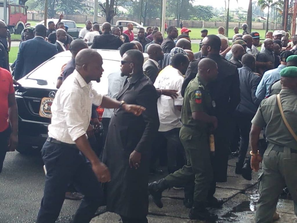 They had reporedly arrived early at the Assembly complex with thugs and heavily armed policemen and with a mace to commence the impeachment of the governor, chasing everyone out, ruffling the press secretary to the speaker, Kufre Okon.
