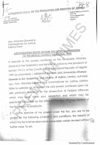 The justice minister said in the letter to the Katsina State Attorney-General that he was granting the fiat in exercise of the powers conferred on him by Section 174 (1) of the Constitution (as amended).