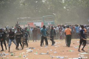 Despite the stampede caused by hoodlums and security men, Ambode continued his address and handed the microphone to the party candidate, Babajide Sanwo-Olu, who delivered the vote of thanks.