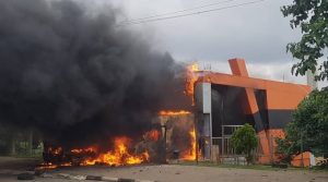 Two vehicles of the agency have been consumed while firefighters are currently battling to put out the inferno.