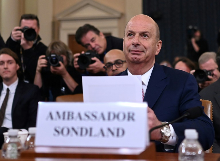 The US ambassador to the European Union told an impeachment hearing Wednesday that he followed President Donald Trump’s orders in seeking a “quid pro quo” deal for Ukraine to probe a political rival in exchange for a White House summit.