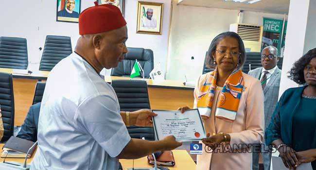 The Independent National Electoral Commission (INEC) has given Certificate of Return to Imo State governor-elect, Senator Hope Uzodinma after the sacking of Governor Emeka Ihedioha by the Supreme Court on Tuesday.