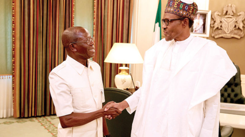 The embattled National Chairman of the All Progressives Congress, Mr Adams Oshiomhole, seems to be direly searching for presidential salvation, visiting President Muhammadu Buhari at Aso Rock Villa on Thursday as Nigeria Police officials keeps vigil over the National Secretariat of the All Progressives Congress in Abuja.