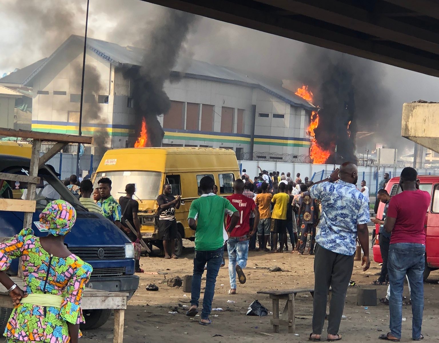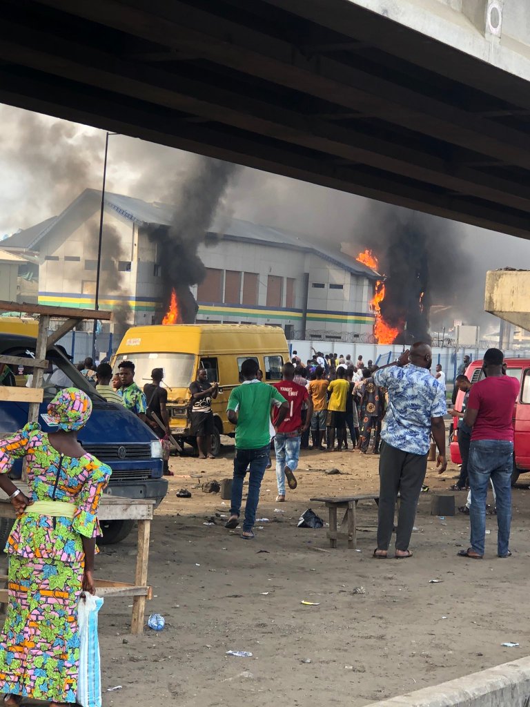 Hoodlums on Tuesday attacked and set ablaze the Layeni police station on Ojo road, Ajegunle in Apapa.