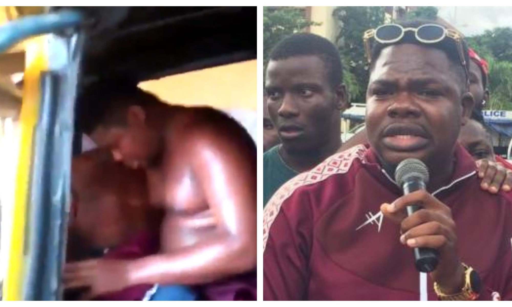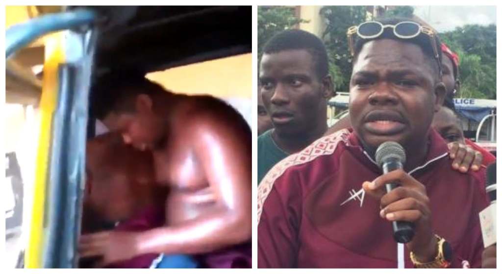 However, a video clip later surfaced on the internet, showing Mr. Macaroni half-naked and sweating in a danfo bus crowded with other arrested protesters.