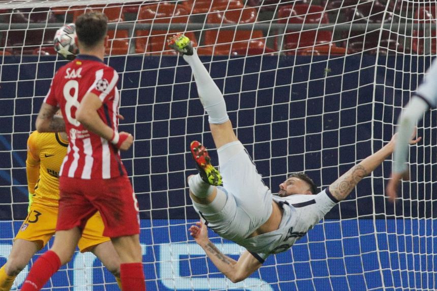 Olivier Giroud’s magnificent bicycle kick broke Atletico Madrid’s resistance and earned Chelsea a crucial away goal on Tuesday, a 1-0 victory giving Thomas Tuchel’s side a slender advantage in the Champions League last 16.