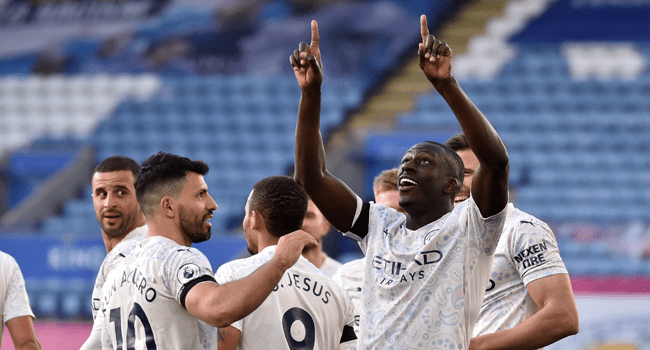Manchester City moved ever closer to a third Premier League title in four seasons as a rare goal from Benjamin Mendy and Gabriel Jesus’s strike earned a 2-0 win at third-placed Leicester on Saturday.