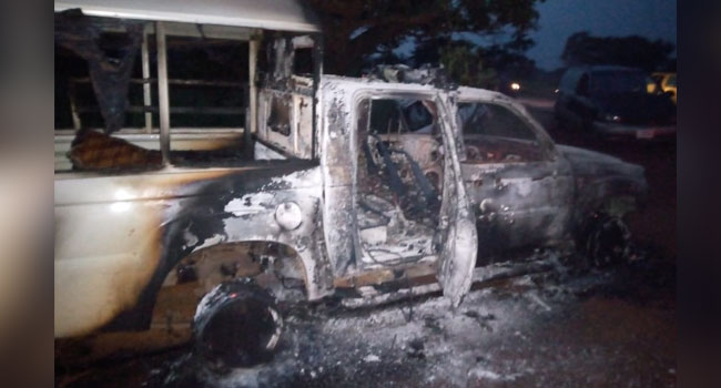 The attackers also burnt the police patrol vehicle.