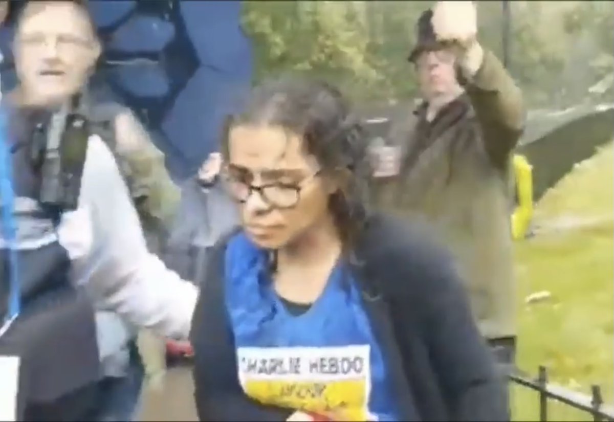 UK police on Monday said they were investigating a knife attack on a woman in a London park, with online footage showing she was wearing a T-shirt with a cartoon from Charlie Hebdo, the French magazine targeted by jihadists.