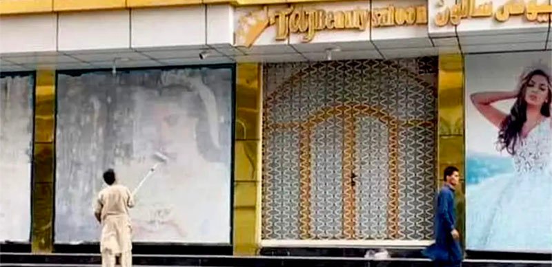 This is even as advertisements that featured women wearing wedding dresses appear to have been painted over in Kabul after Taliban fighters entered Afghanistan’s capital on Sunday, according to Independent.