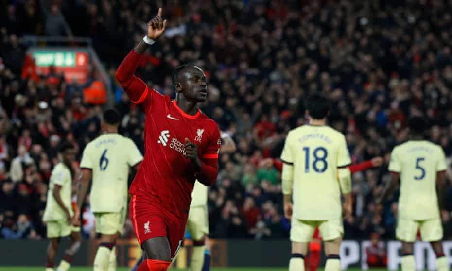 Arsenal were finally breached in soft fashion when Mane headed home unmarked from Alexander Arnold’s free-kick.