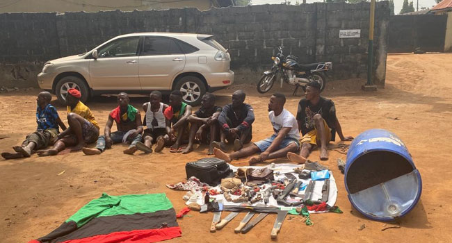 Those arrested include: Ekene Abiaziem age 31 years m of Mgbidi, Emmanuel Nwabueze m age 58 years of Mgbidi, Ifeanyi Eze m age 38 years of Mgbidi, Izunna Chukwukezie m age 39 years of Okwudo, Ejike Onuabuike m age 44 years of Okwudo, Chukwuebuka Elvis Nkonta m age 27 years of Okwudo, Jerohm Amaiah m 33 years of Okwudo, Chukwuebuka Nwachukwu m age 23 years of Okwudo and Chimobi Ogbonna m age 27 years of Awomama to the station.