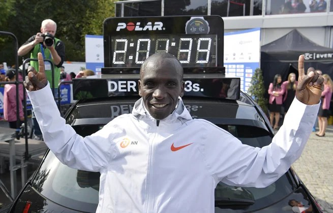 He made history in 2019 by breaking the two-hour barrier in a specially designed challenge run, but his 1:59.40 does not count as a world record primarily because of the use of 41 rotating pacemakers.