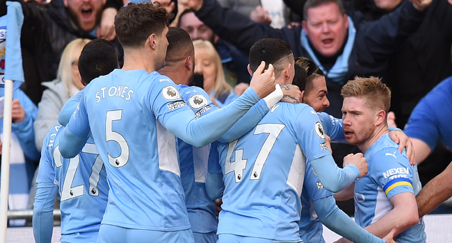 A brace each from Kevin De Bryne’s and Riyad Mahrez ensured Manchester City beat Manchester United in a derby on Sunday to reopen a six point lead in the Premier League.
