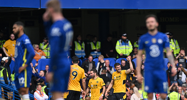 Chelsea blew a two-goal lead in front of prospective owner Todd Boehly as Wolves snatched a dramatic 2-2 draw, while Watford were relegated from the Premier League after defeat at Crystal Palace on Saturday.