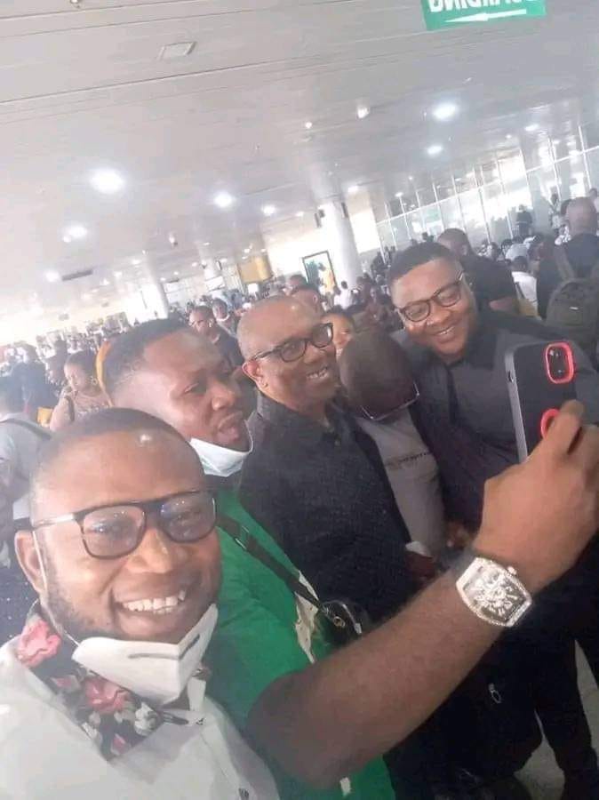 The presidential candidate of the Labour Party was on Saturday mobbed by exuberant Nigerians when he arrived at the Abuja airport from Egypt, where he had gone to understudy how that country achieved a regular supply of electricity in just a few years.