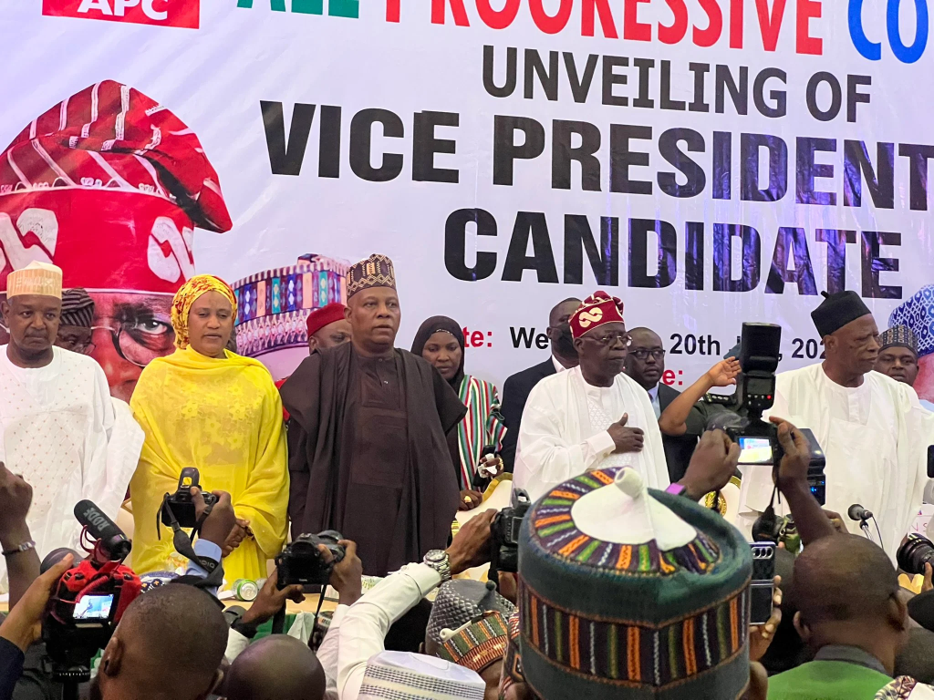 Despite raging controversy over Muslim-Muslim Ticket, the All Progressives Congress, APC, has unveiled former Borno State Governor, Kashim Shettima as its 2023 presidential running mate.