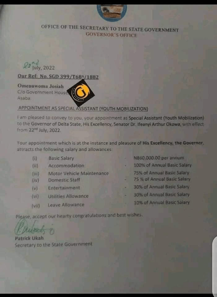 A young Nigerian man, Omenuwoma Josiah has rejected Governor Ifeanyi Okowa’s appointment as Special Assistant on Youth Mobilization.