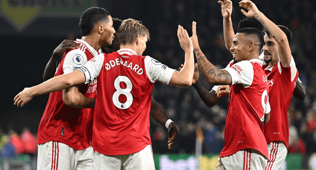 Arsenal head into the World Cup break five points clear at the top of the Premier League after they beat Wolves 2-0 on Saturday as Manchester City suffered a shock 2-1 home defeat to Brentford.