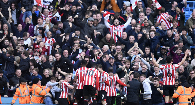 But City were caught out by a clinical counter-attack from the visitors as Yoane Wissa and Josh Dasilva combined to tee up Toney to tap home.