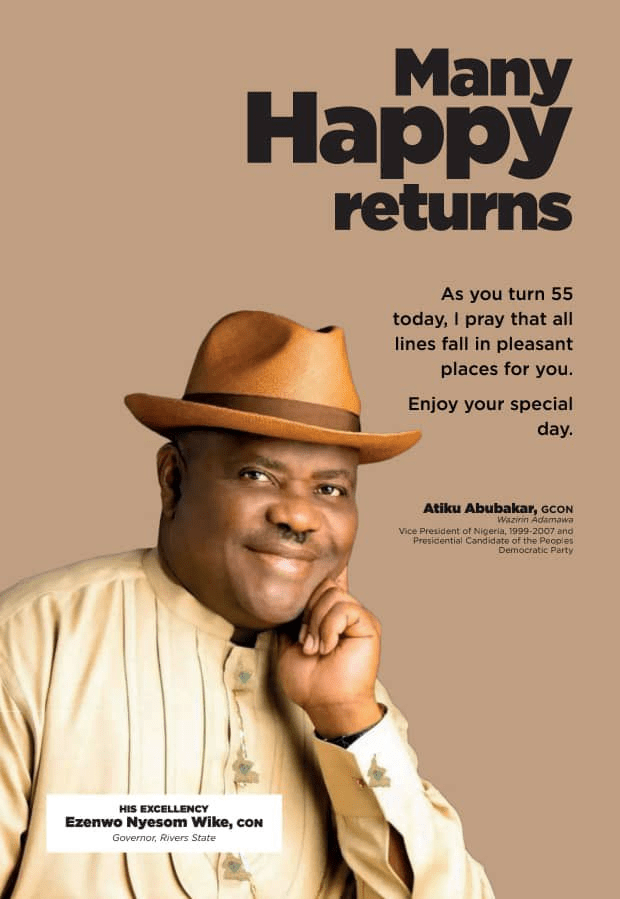 Presidential candidate of the People’s Democratic Party, PDP, Atiku Abubakar on Tuesday showed statemanship as he congratulated Governor Nyesom Wike of Rivers state on his 55th birthday anniversary.