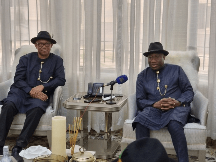 The presidential candidate of the Labour Party (LP), Peter Obi, on Friday, met with former President Goodluck Jonathan at his Yenagoa residence in Bayelsa State.