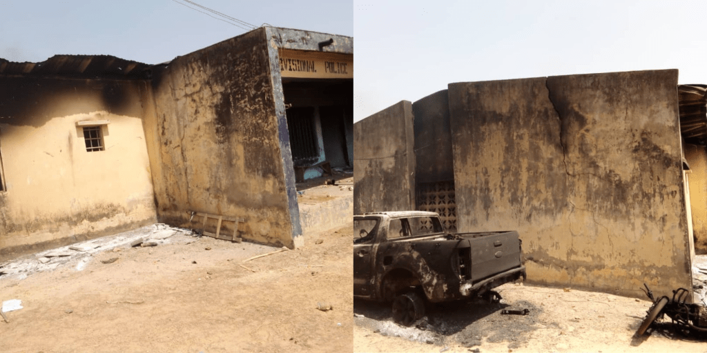 The angry youths reportedly mobilized themselves around 9 am on Tuesday, armed with dangerous weapons and started chanting war songs across the streets of the town before heading to the Police Station where they set it ablaze.
