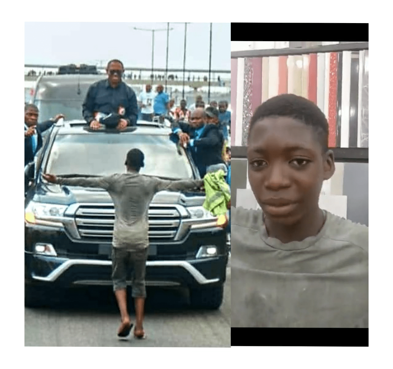 A teenager, who identified himself as Yusuf Alami, has revealed why he stood in front of the convoy of the presidential candidate of the Labour Party, Peter Obi, in the iconic picture that went viral on social media.