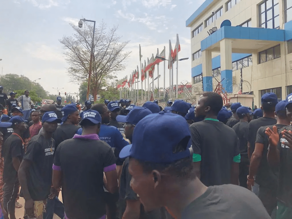 The Chairman of the party, Senator Iyorchia Ayu and other leaders and supporters of the party gathered at the Legacy House Maitama, from where they are to march to INEC National Headquarters.