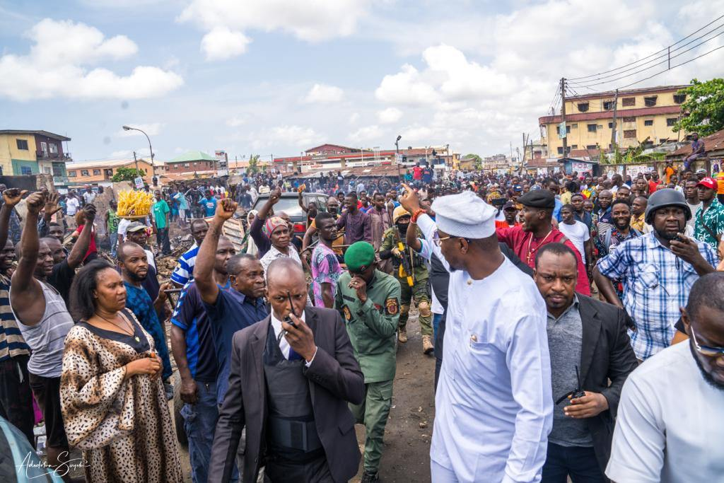 The governorship candidate of the Labour Party, Gbadebo Rhodes-Vivour (GRV) on Wednesday visited shop owners whose properties at Akere Spare Parts Market, in the Ajegunle area of Lagos were reportedly burnt by suspected political thugs in the wee hours of Wednesday.