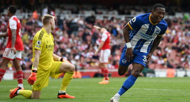 The Gunners’ hopes of a first league title in 19 years were realistically ended as goals from Julio Enciso, Deniz Undav and Pervis Estupinan left them still four points adrift of City, who have three games left to secure the one win they need to win the league.
