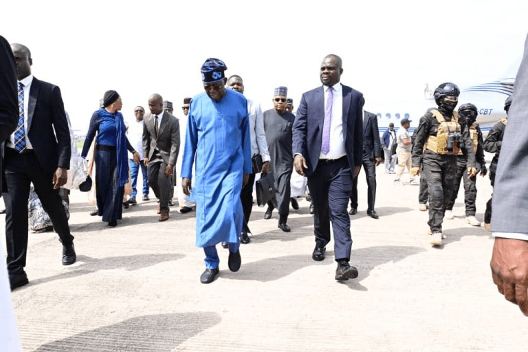 The ‘president-elect’, Bola Ahmed Tinubu has returned to the country after his ‘working visit’ to France.