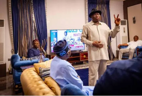 Jonathan Visits Tinubu At Presidential Villa (VIDEO)