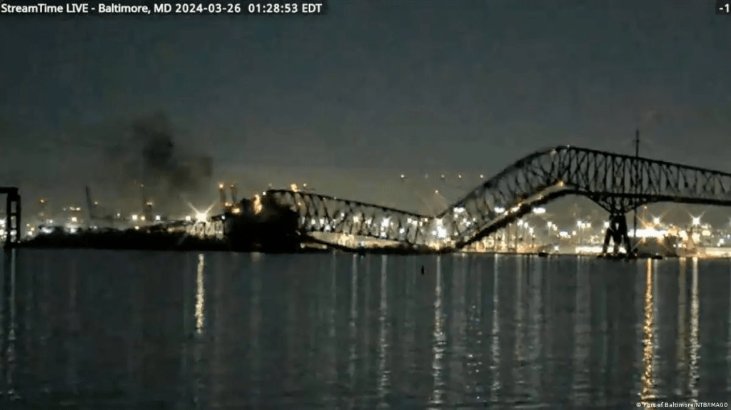 The Francis Scott Key Bridge in the US city of Baltimore collapsed after a ship collided with it, the Maryland Transportation Authority said early Tuesday.