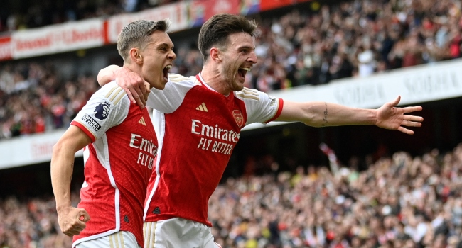 But Rice blasted home from close-range deep into stoppage-time as Arsenal cruised to a victory that kept their title dreams alive.