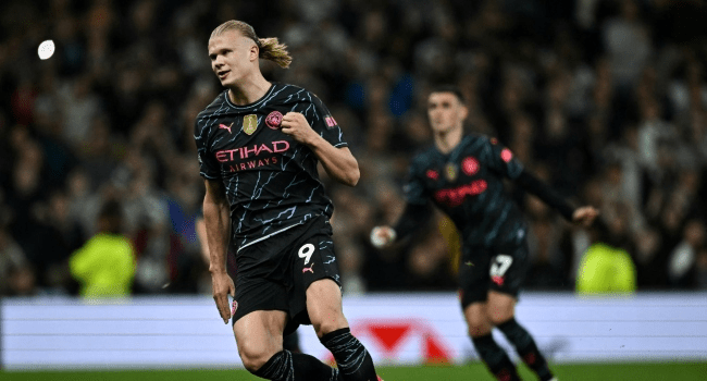 The Norwegian forward tapped home a pinpoint Kevin De Bruyne cross early in the second half to score City’s first-ever league goal at the Tottenham Hotspur Stadium and netted a late penalty to seal the three points.