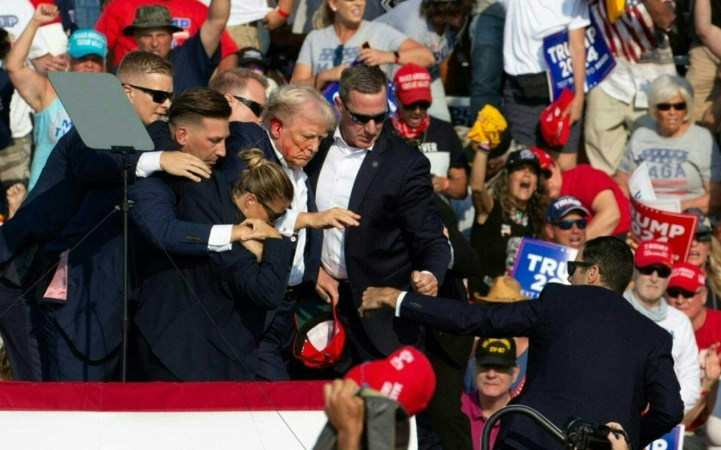 Former US president Donald Trump is “safe” after he was rushed off stage when gunshots were fired at a campaign rally on Saturday in Pennsylvania, in a shocking incident that will fuel anxiety in the run-up to the 2024 election.