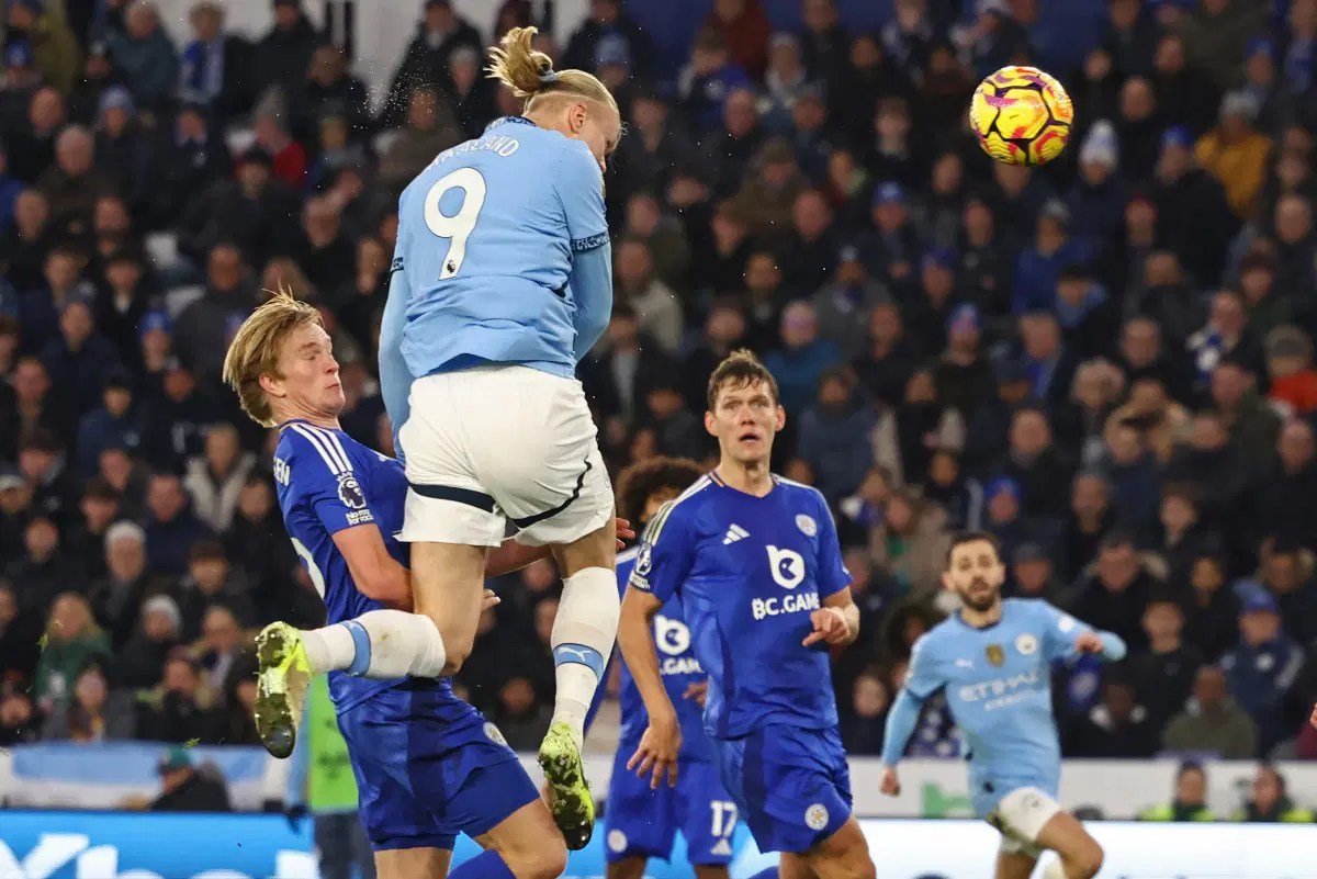 Rico Lewis picked out De Bruyne, who cushioned a cross into the path of Haaland but his low effort was well saved by Leicester’s stand-in goalkeeper Jakub Stolarczyk.