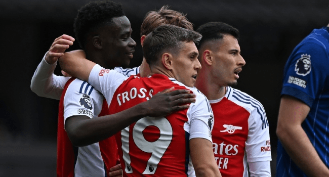 Martin Odegaard injected urgency into the attack with a burst from midfield, passing to Saka, whose low cross reached Trossard as the Belgian forward prodded a low finish into the far corner from 10 yards.