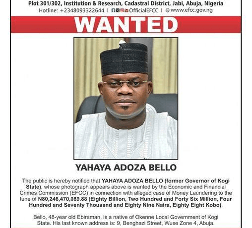 From Executive Governor To Fugitive: EFCC Declares Yahaya Bello Wanted